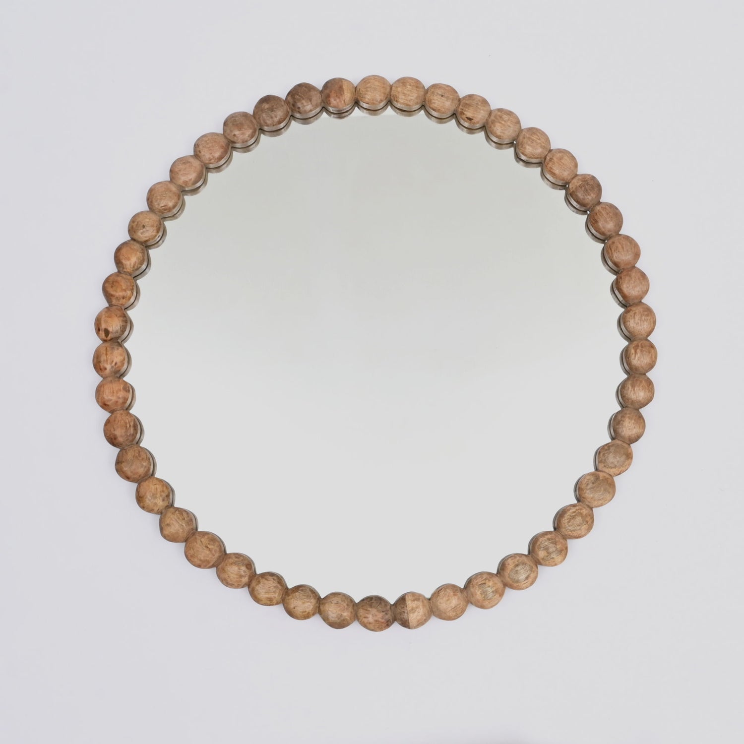 - Elegant Design: Round wall mirror featuring a unique natural wooden bead frame for a rustic yet contemporary look.