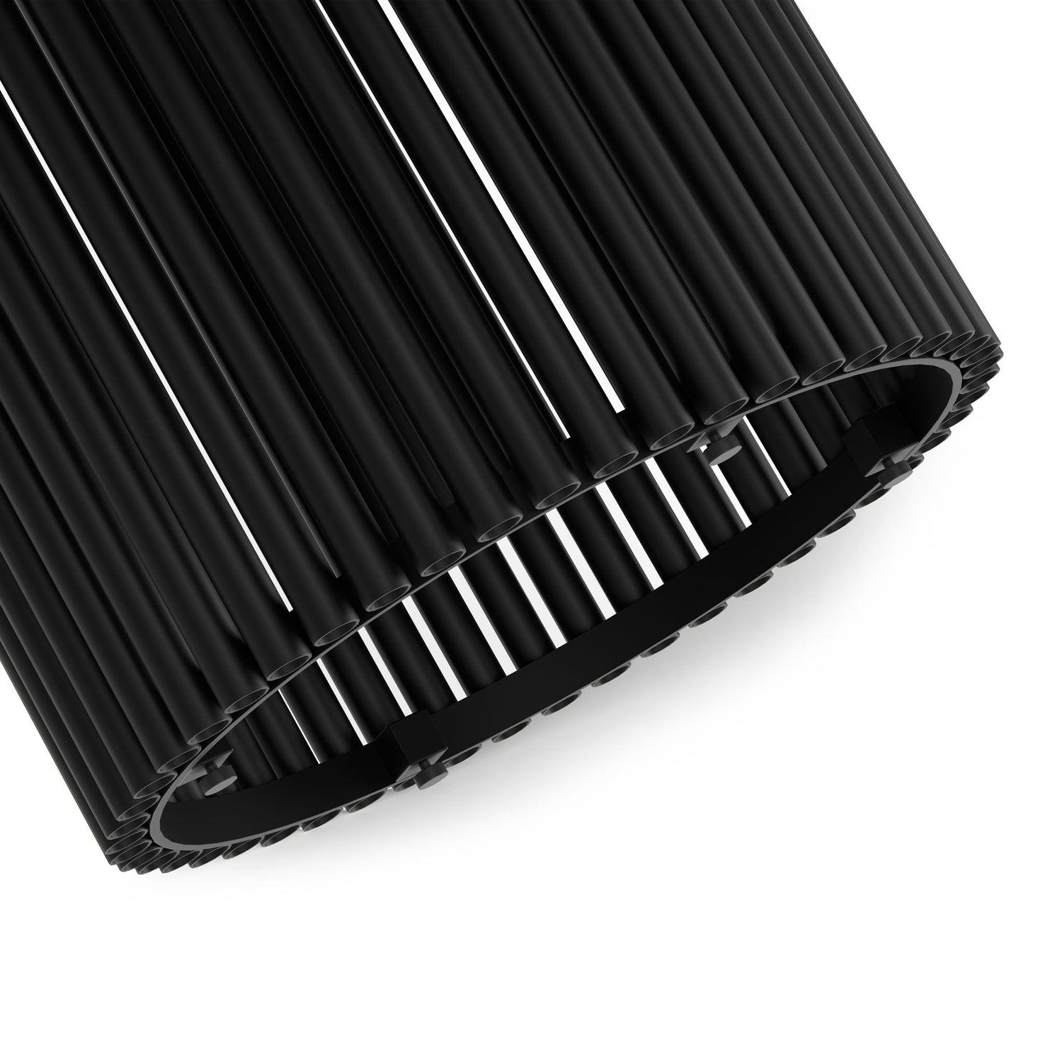 - Features solid wood table top and tall cylinder shape with unique pipe design base