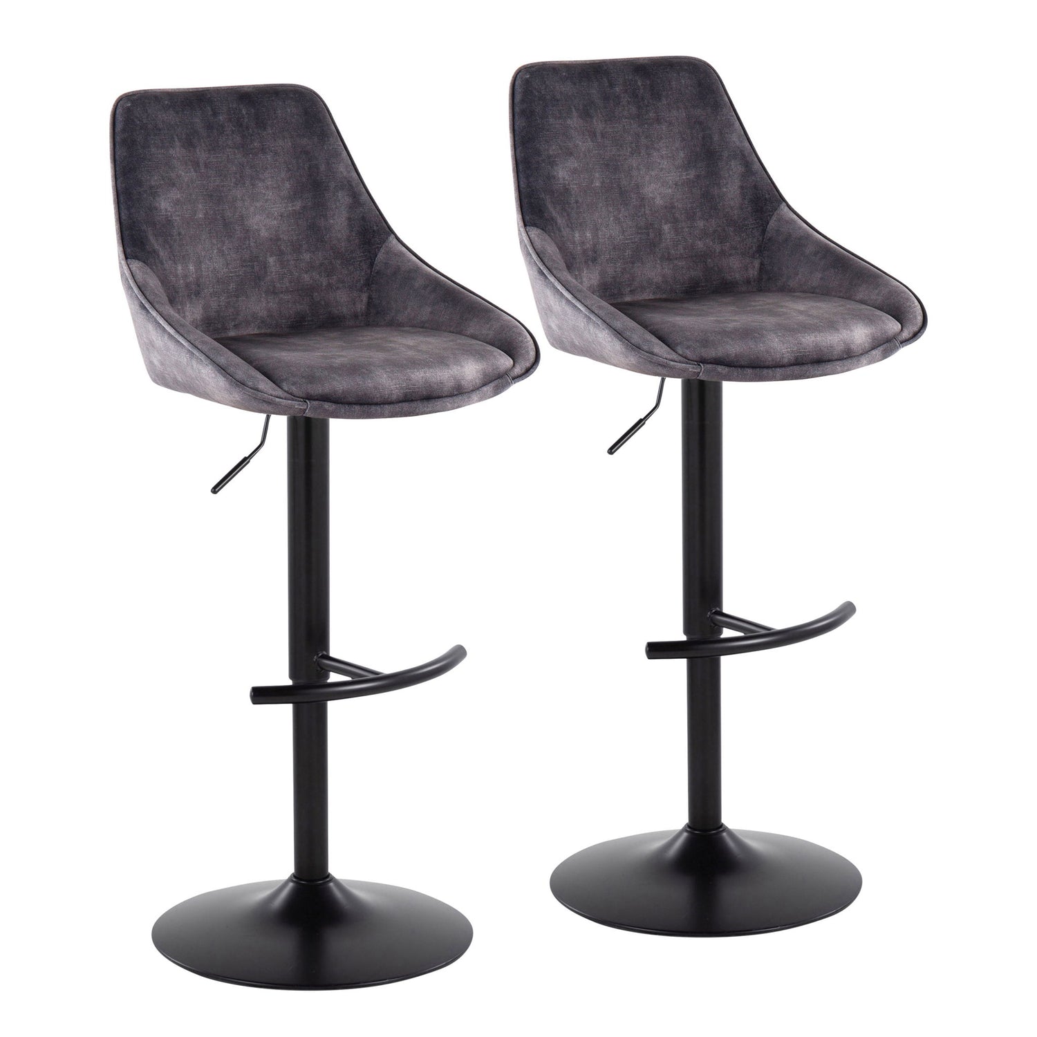 Diana - Contemporary Adjustable Barstool With Swivel With Rounded T Footrest (Set of 2) - Black / Gray