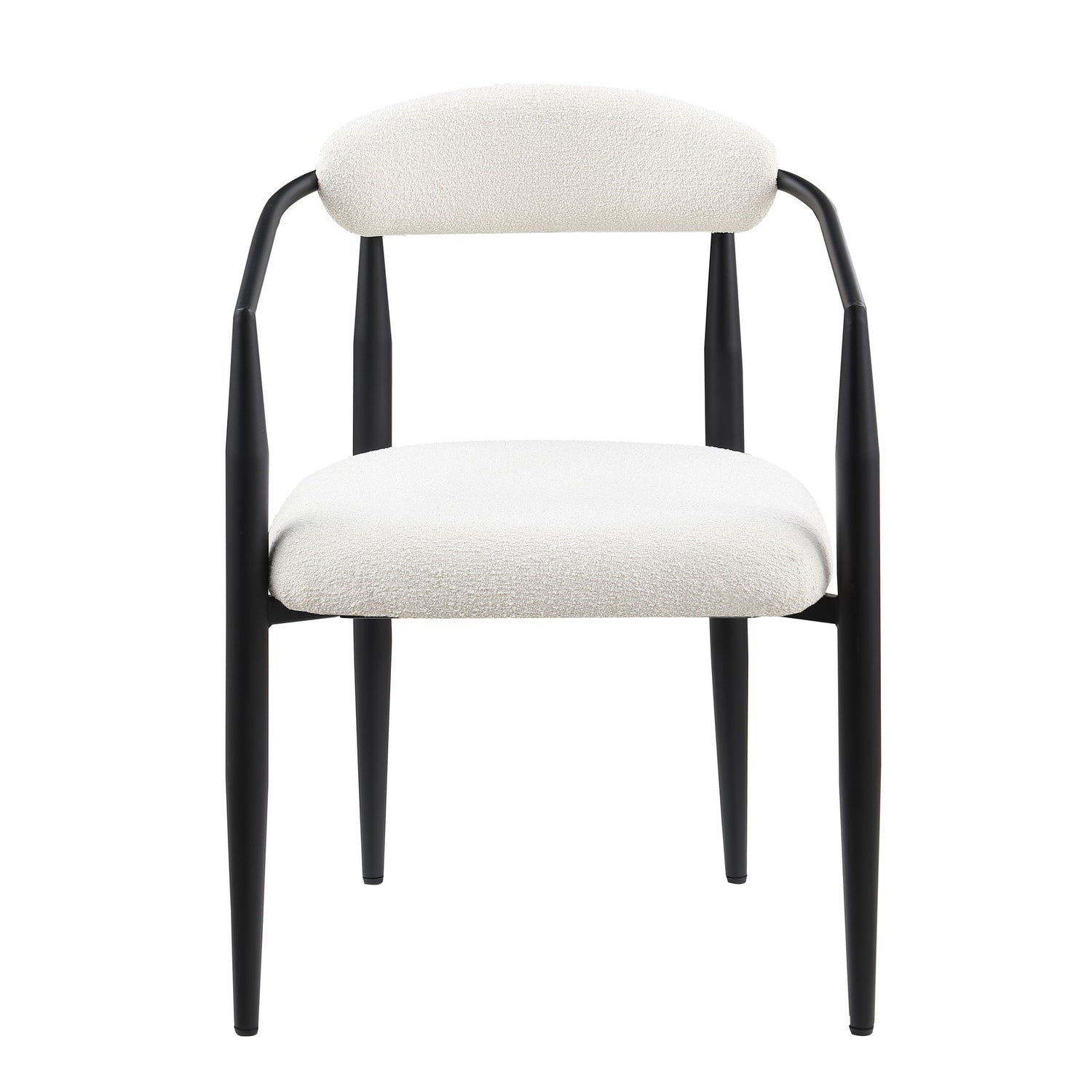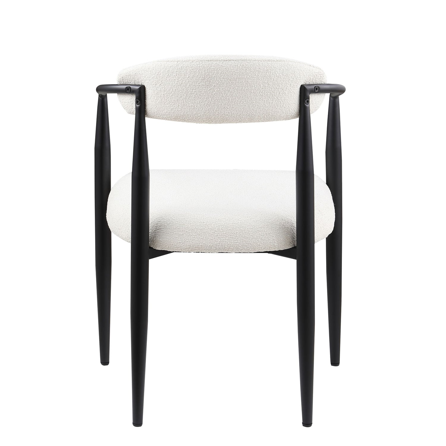 Dining Chairs (Set of 2), Mid-Century Modern Dining Chairs, Kitchen Dining Room Chairs, Round Boucle Backrest Sherpa Dining Chair With Metal Legs - White / Black
