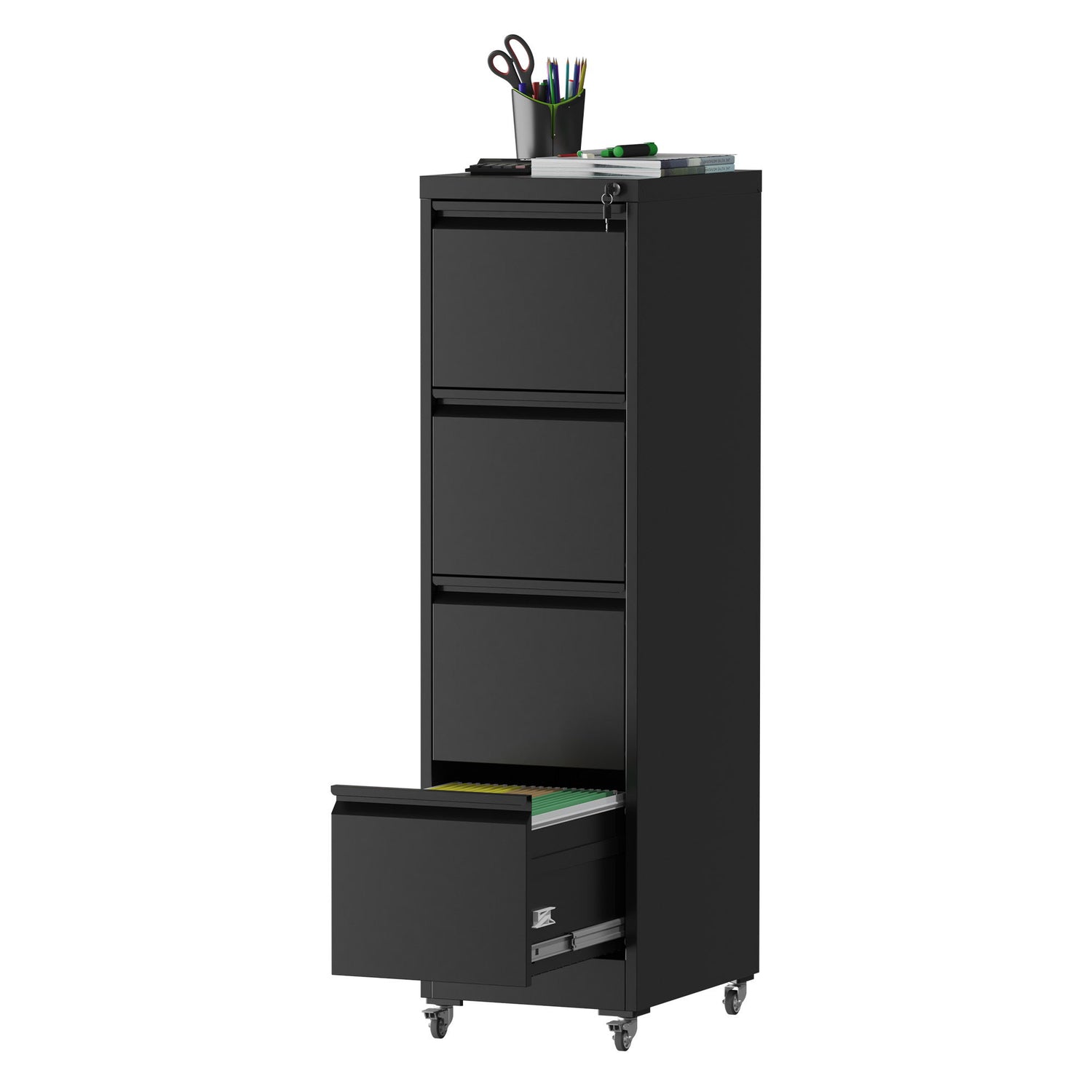 Drawer Metal Locking Vertical File Cabinet With Wheels Heavy Duty Lockable Storage - Black / 15.16"W x 17.72"D x 64.17"H is backordered and will ship as soon as it is back in stock.