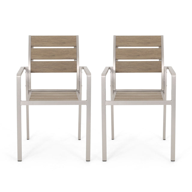 Dreamlan - Outdoor Aluminum Dining Chair With Faux Wood Seat (Set of 2) - Natural / Silver