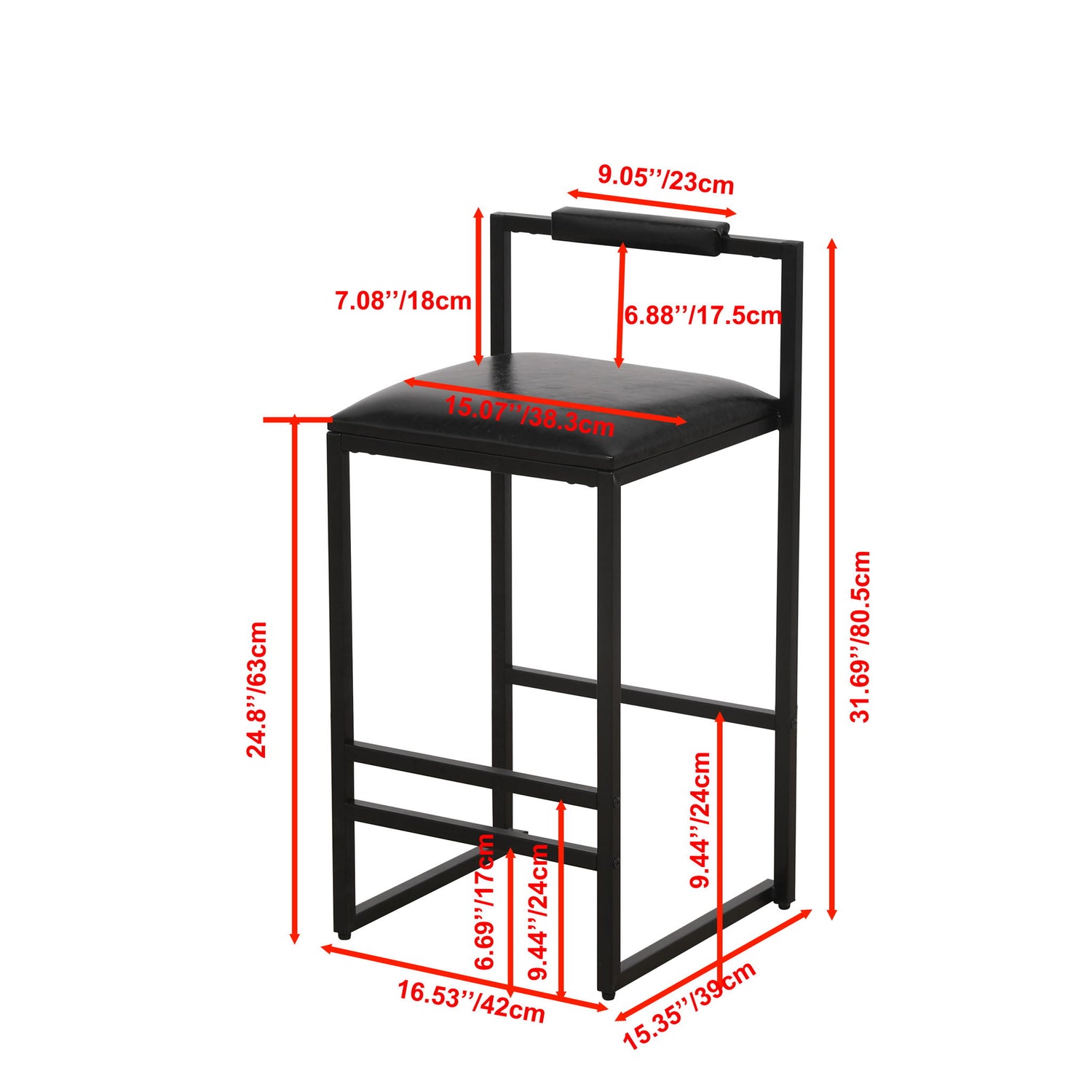 Elegant Bar Stool Set With Backrest And Footrest, Upholstered, Iron Frame, Counter Height - Black