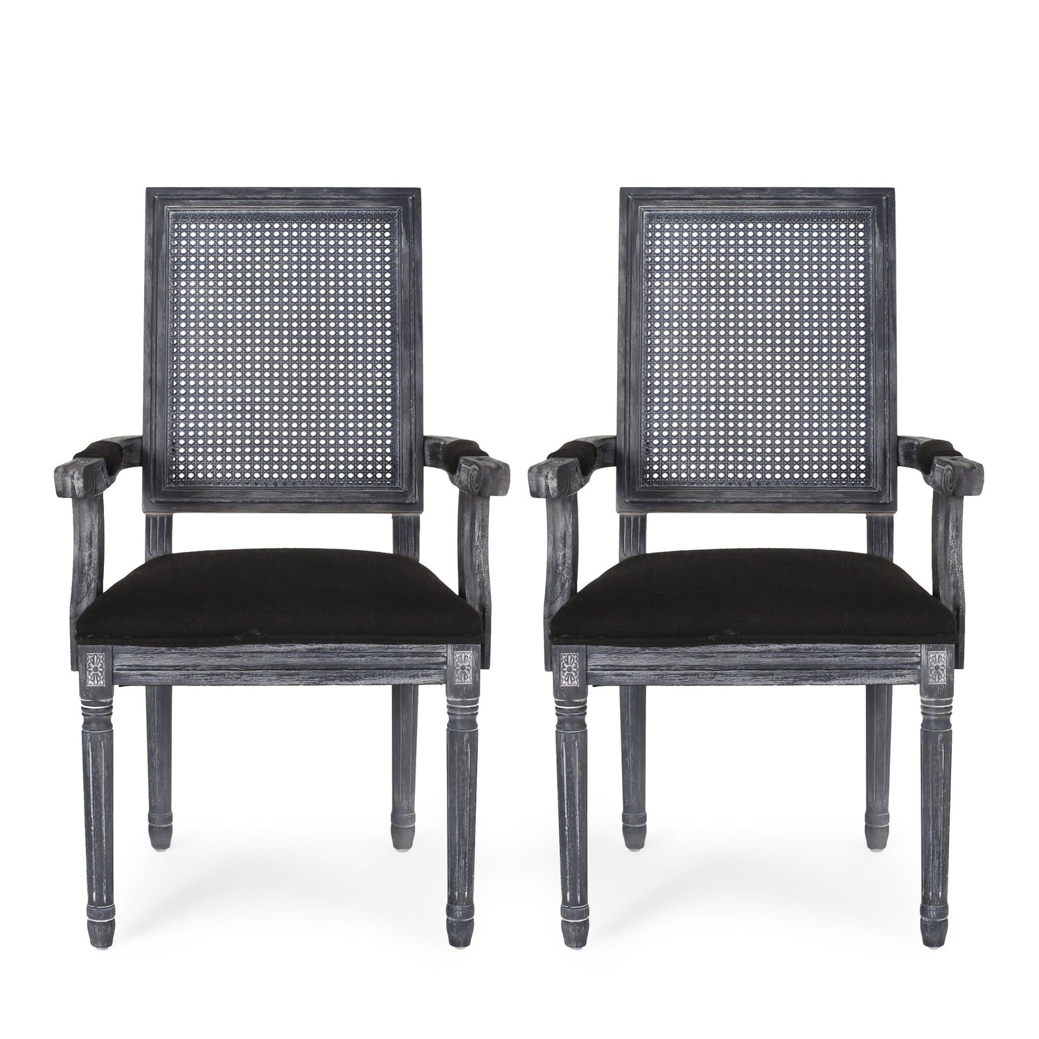 Elegant French Country Style Dining Chair With Cane Backrest - Dark Gray / 1 Piece is backordered and will ship as soon as it is back in stock.