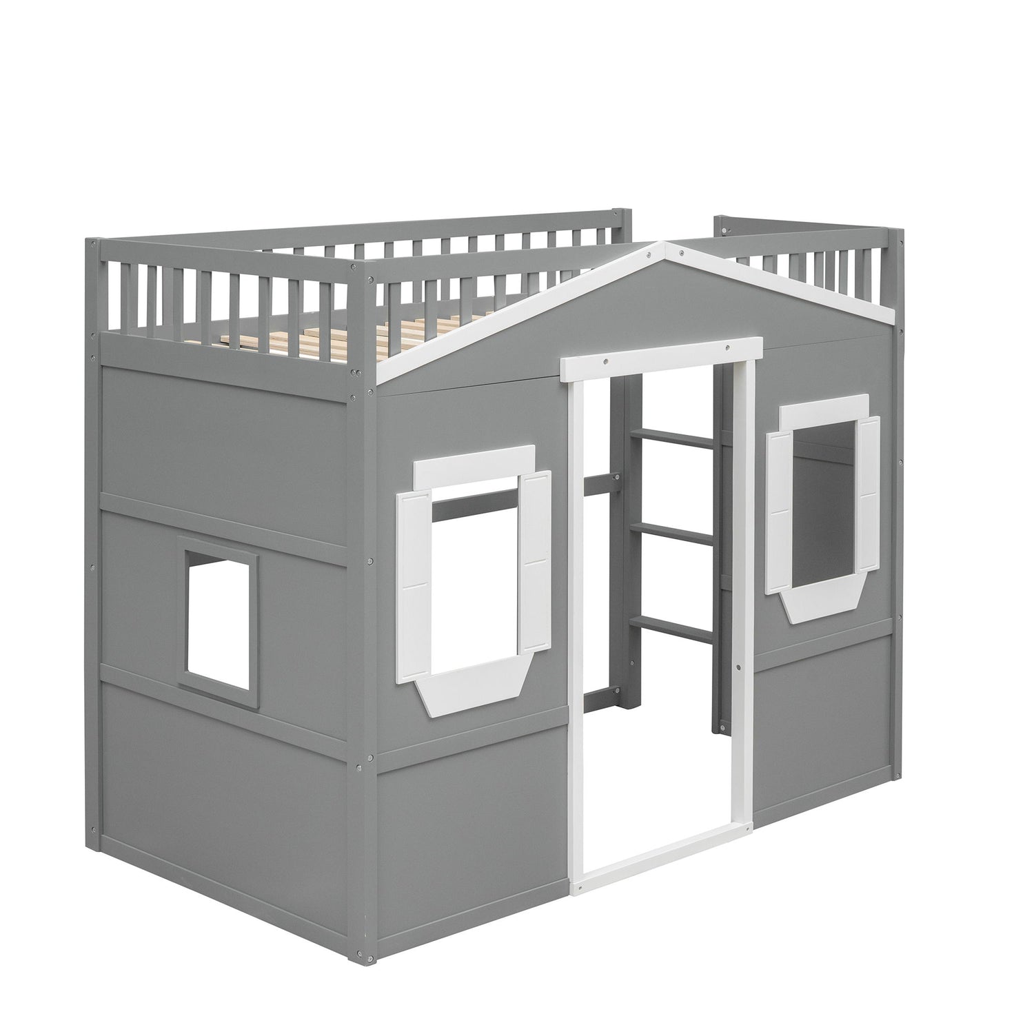 Full Size House Loft Bed With Ladder - Gray / White