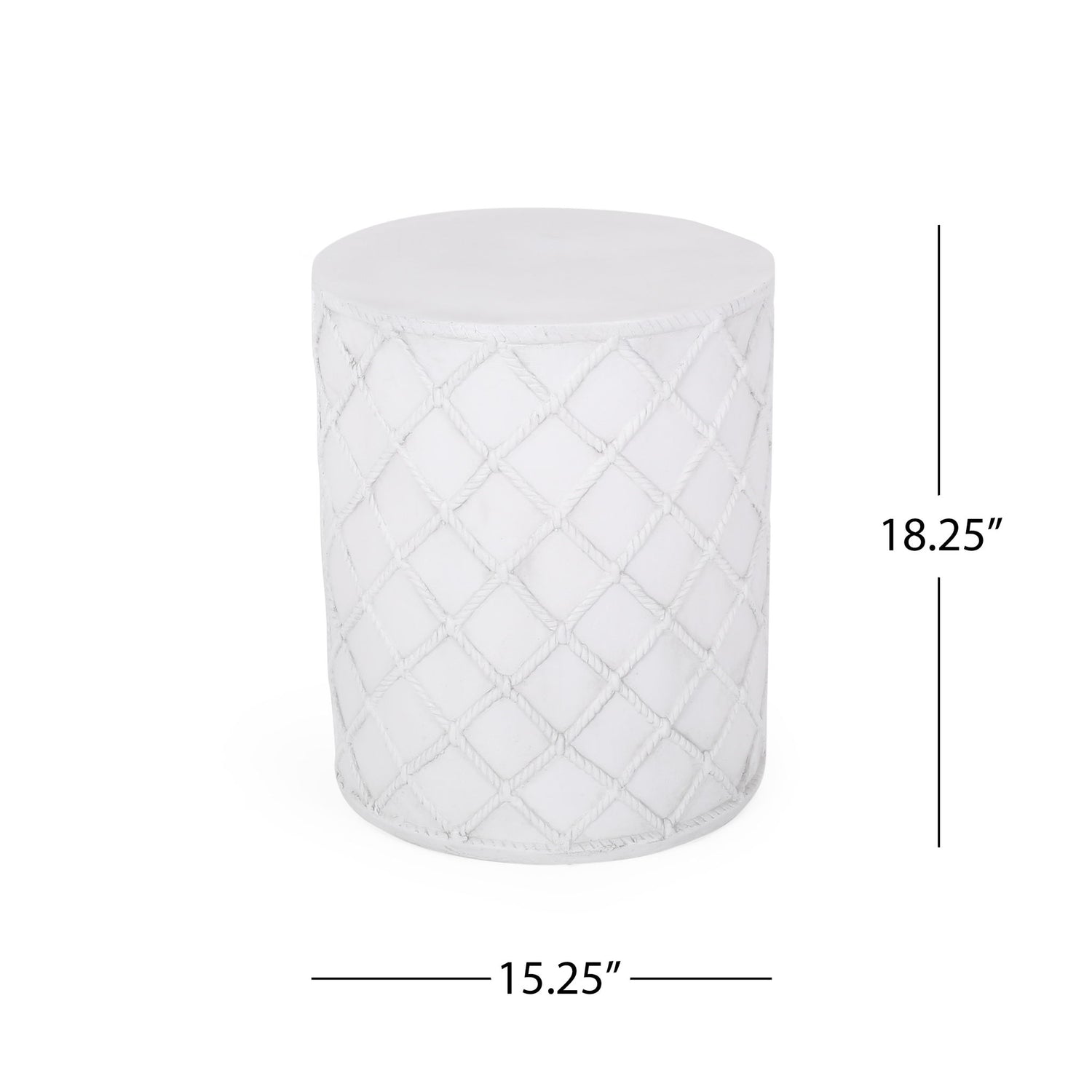 - A TOUCH OF PERSONALITY: Bring your outdoor space to life with our end table that features a simple cylindrical structure and a nautical diamond rope pattern. With charming aesthetics, this side table will be sure to enliven any home.