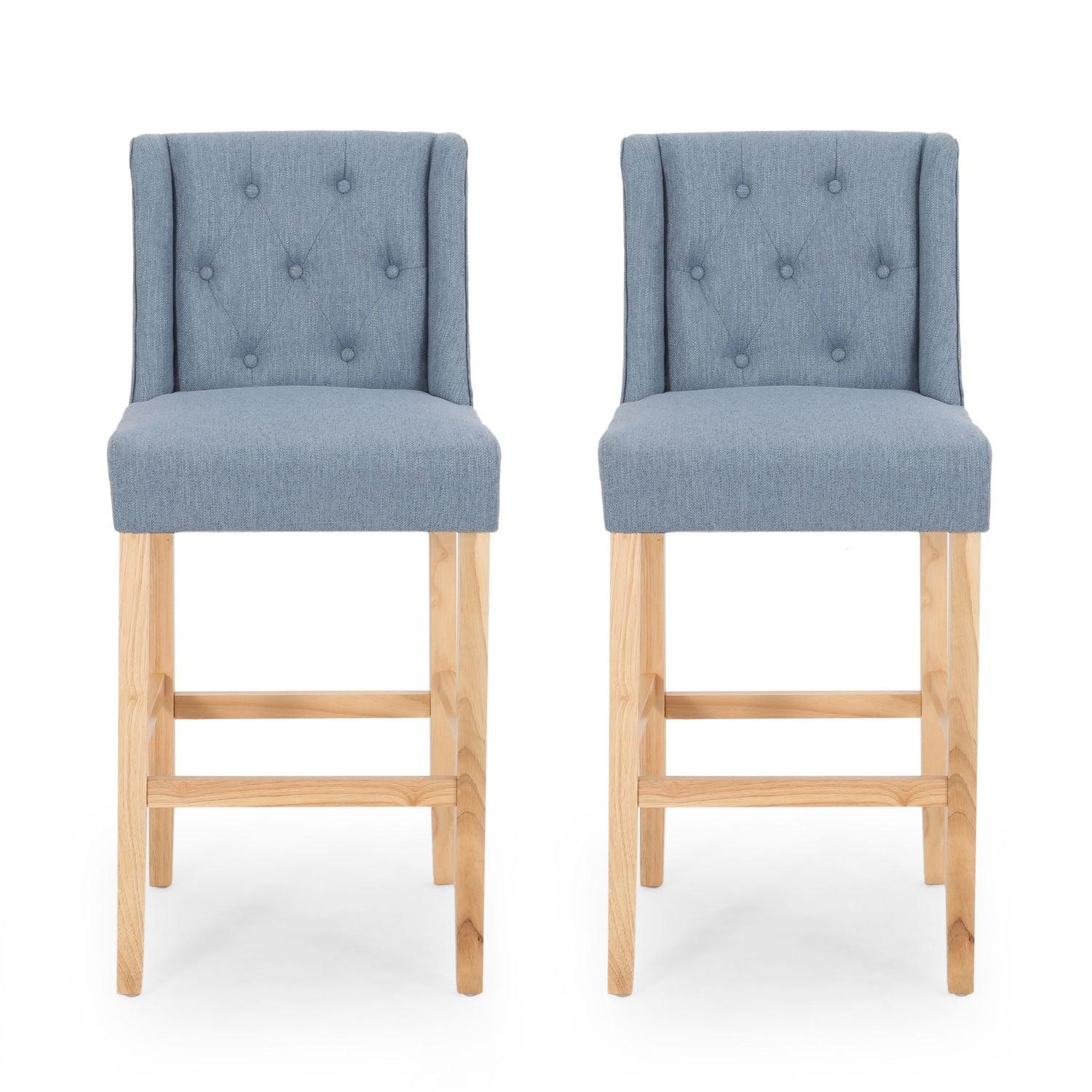 Ethereon - Fabric Tufted Counter Stool (Set of 2) - Light Blue