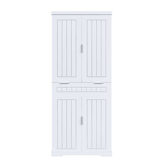 Farmhouse Style Pantry Cabinet With Drawer 2 Cabinets & 6 Door Shelves Adjustable Shelves Freestanding Cupboard - White