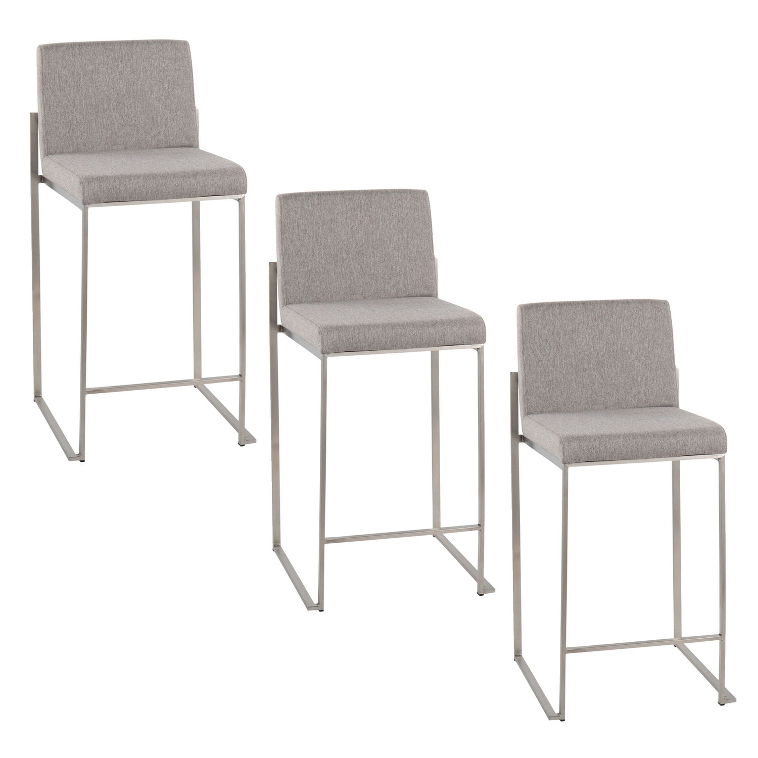 Fuji - Contemporary High Back Counter Stool (Set of 3) - Gray