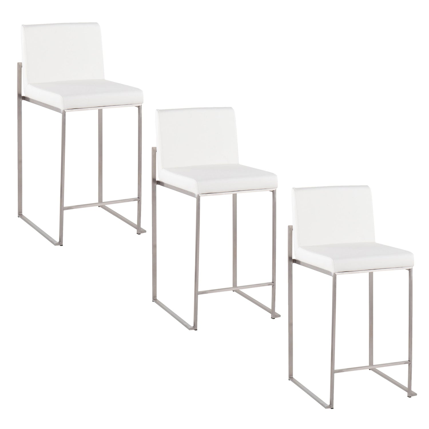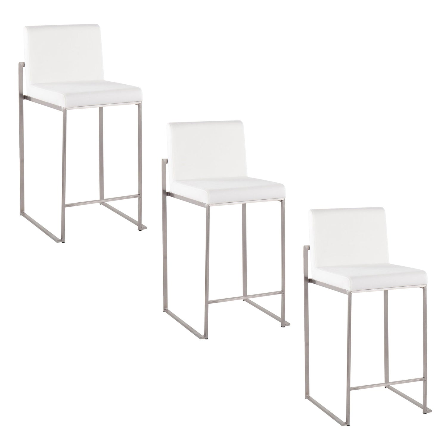 Fuji - Contemporary High Back Counter Stool (Set of 3) - White