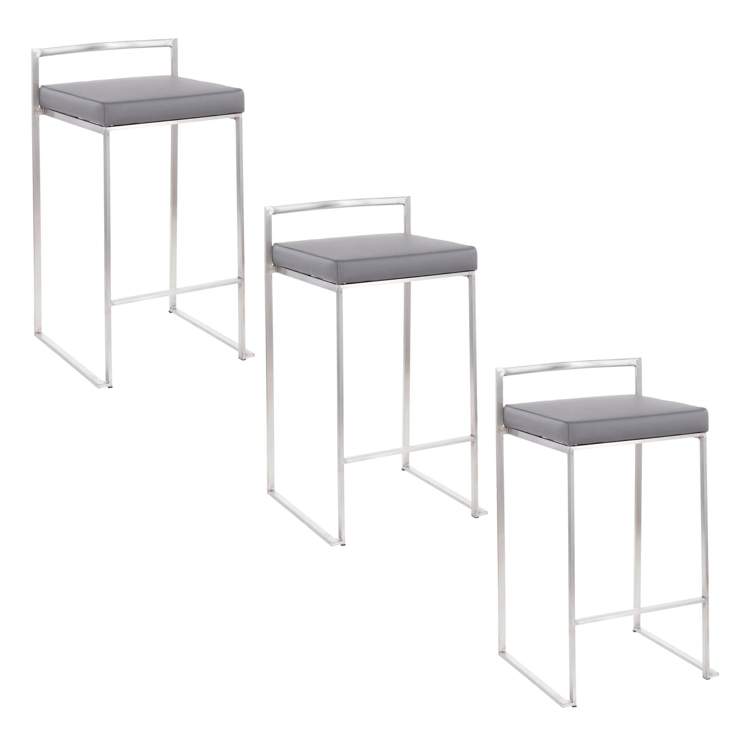 Fuji - Contemporary Stackable Counter Stool (Set of 3) - Gray
