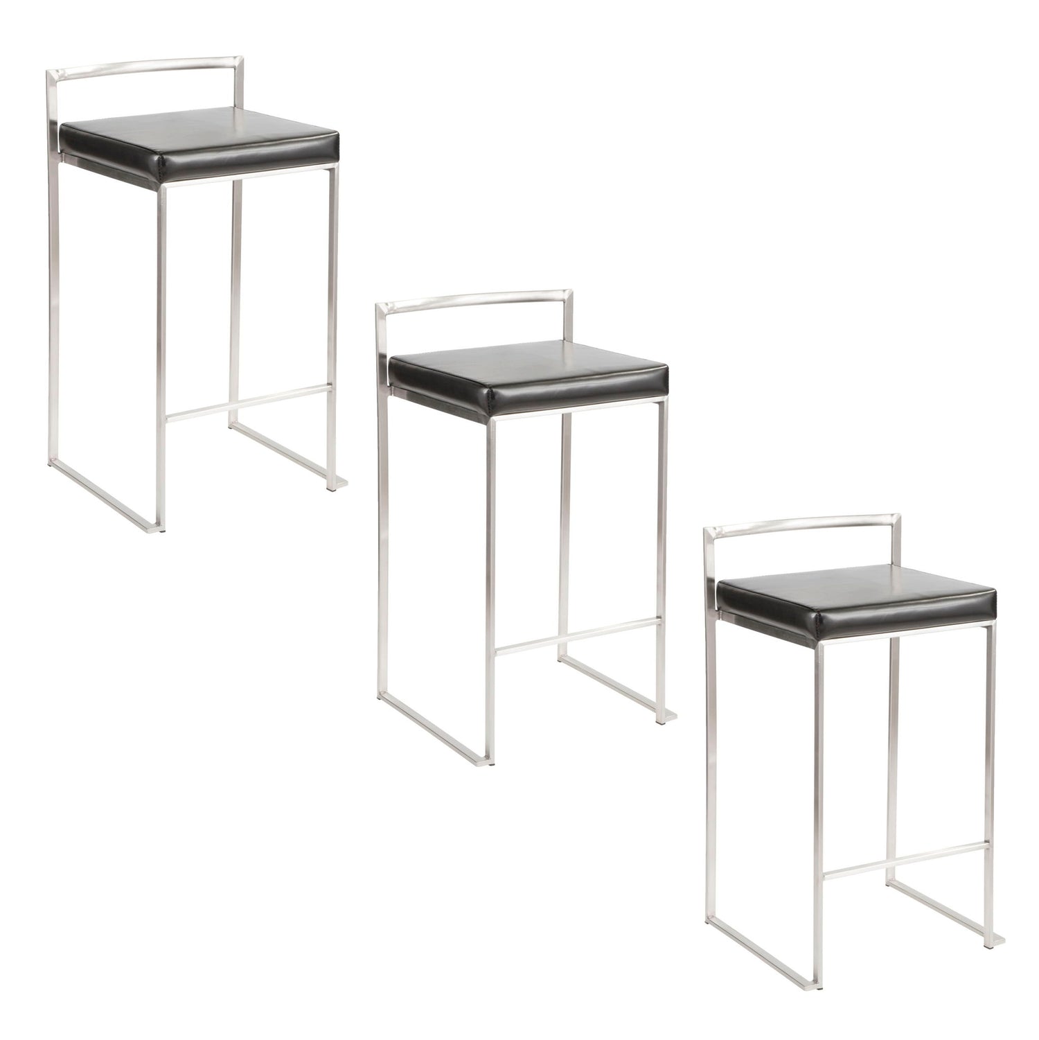 Fuji - Contemporary, Stackable Counter Stool (Set of 3) - Black