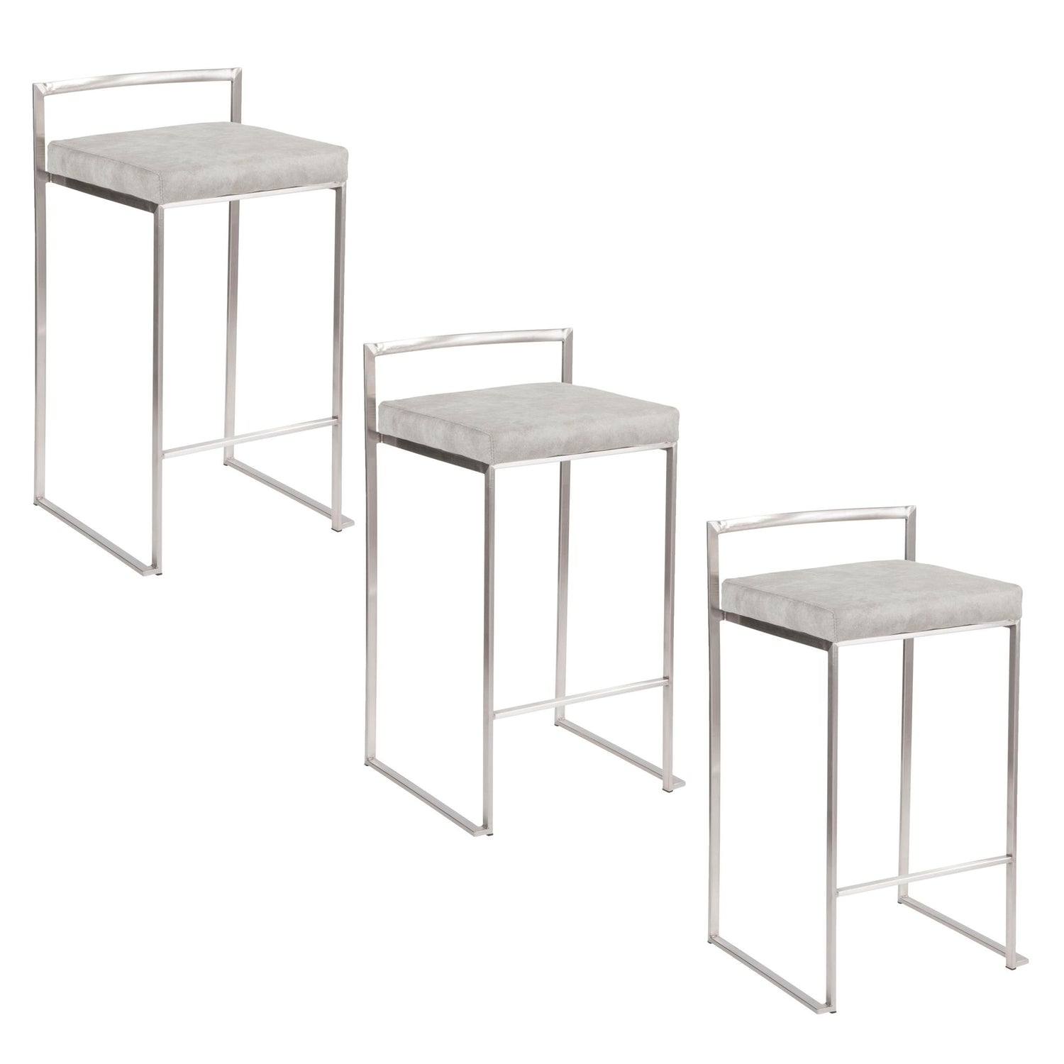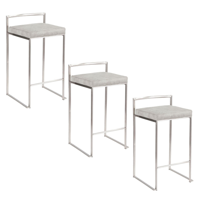 Fuji - Contemporary Stackable Counter Stool (Set of 3) - Light Gray