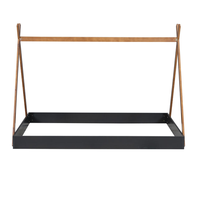 Full Size Tent Floor Bed With Triangle Structure, Low Profile Design - Black / Brown