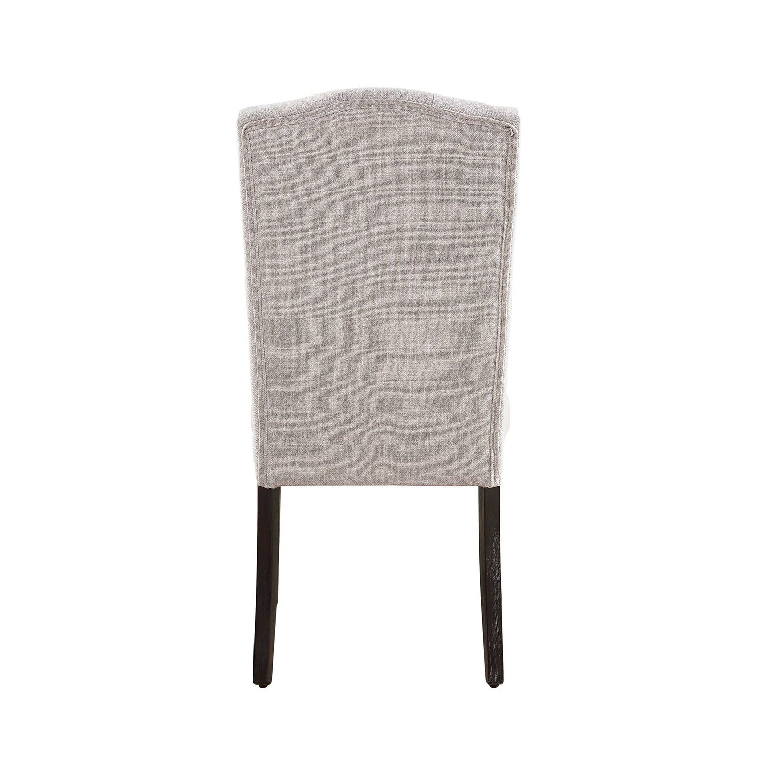 - Elegant Design: This set of two side chairs features soft beige linen upholstery and warm, weathered espresso wooden tapered legs, bringing a touch of understated sophistication to any room.