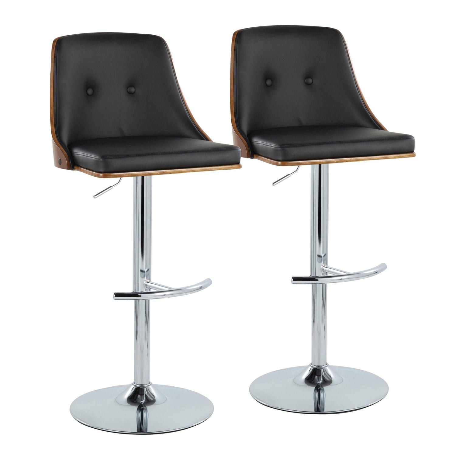 Gianna - Mid-Century Modern Adjustable Barstool With Swivel With Rounded Footrest (Set of 2) - Walnut / Black