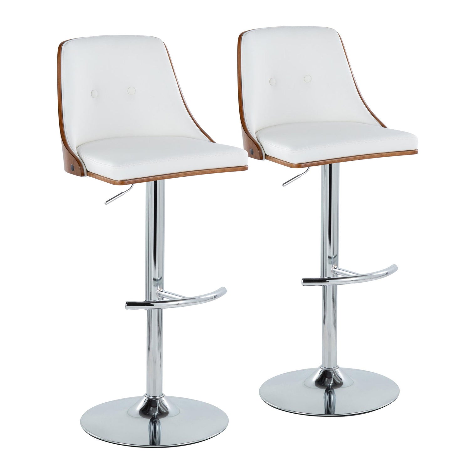 Gianna - Mid-Century Modern Adjustable Barstool With Swivel With Rounded T Footrest (Set of 2) - Chrome / Walnut / White