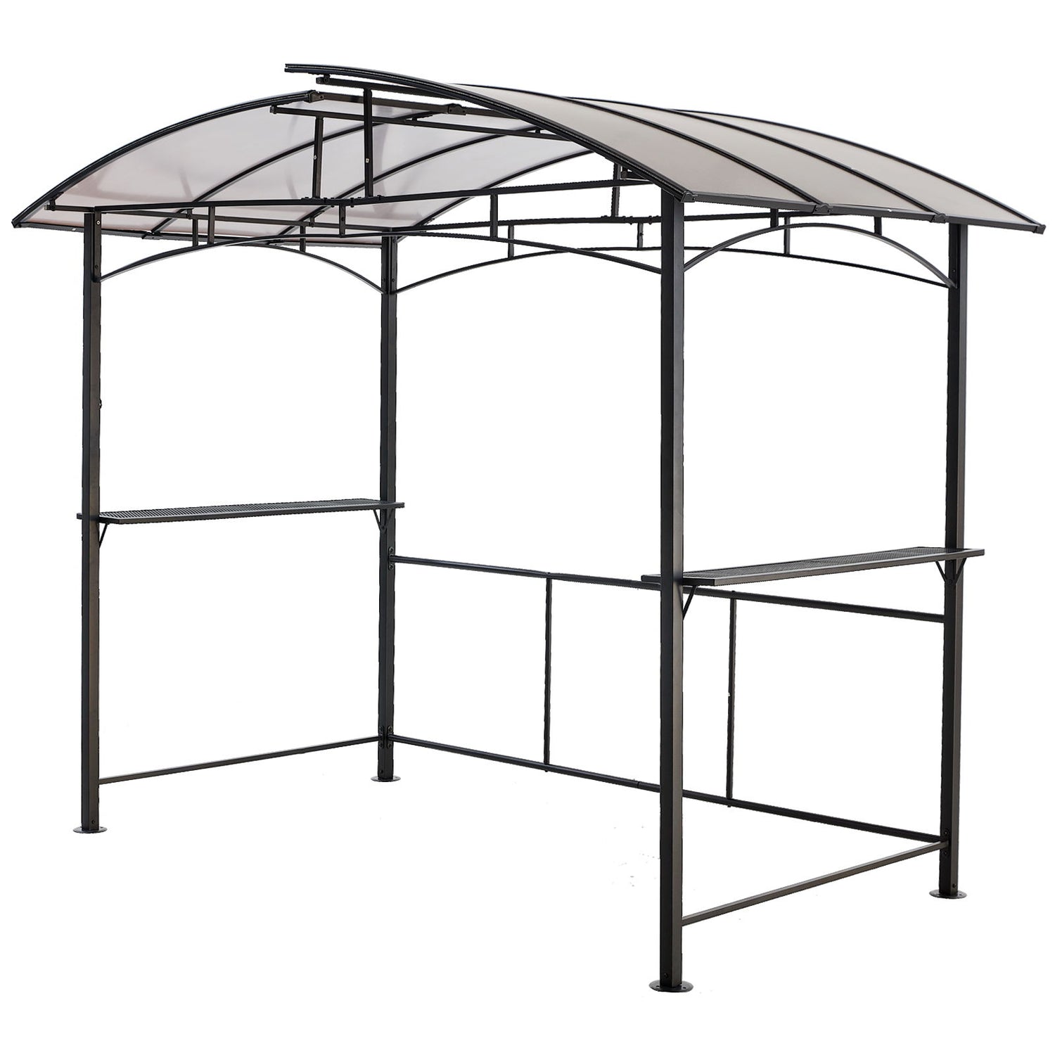 Grill Gazebo 8X5Ft, Outdoor Patio Canopy, Bbq Shelter With Steel Hardtop And Side Shelves - Black