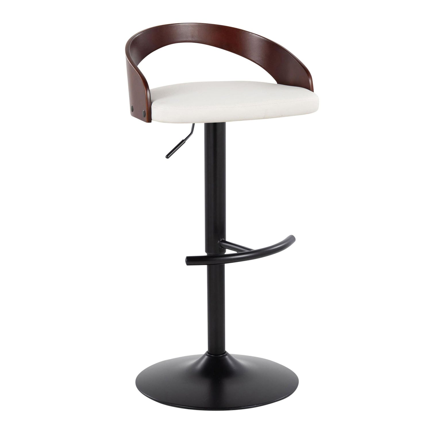 Grotto - Contemporary Adjustable Barstool With Swivel With Rounded T Footrest (Set of 2) - Black / Walnut / Cream