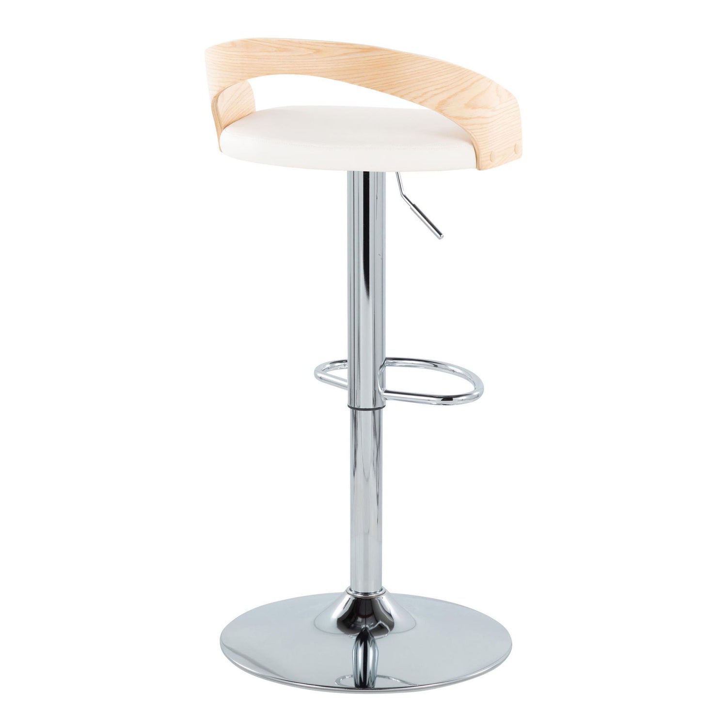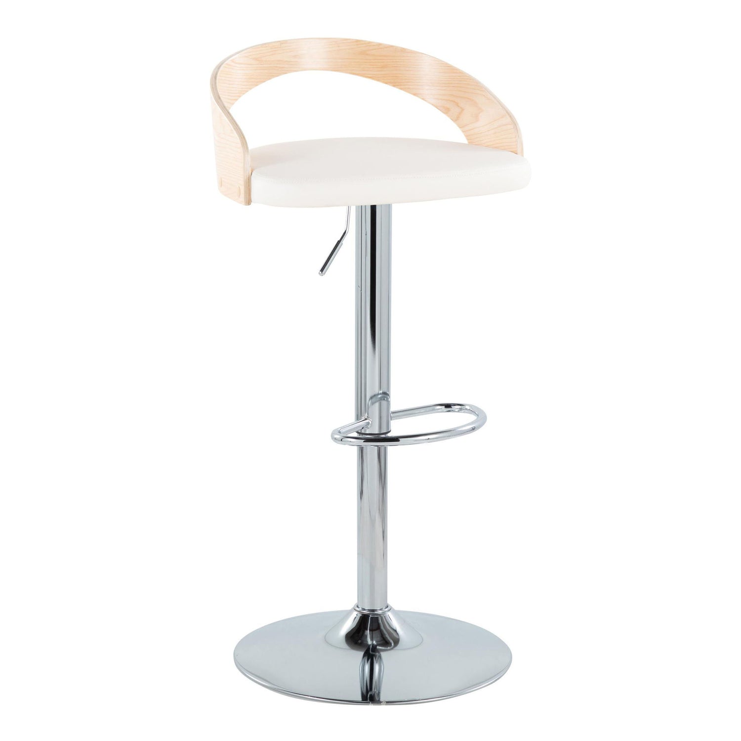Grotto - Mid-Century Modern Adjustable Height Barstool With Swivel With Oval Footrest (Set of 2) - Chrome / Natural / White