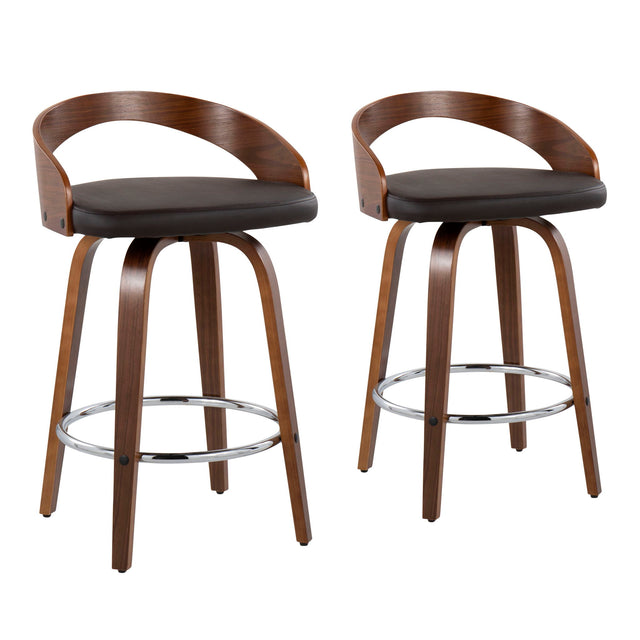 Grotto - Mid-Century Modern Counter Stool With Swivel (Set of 2) - Walnut / Brown