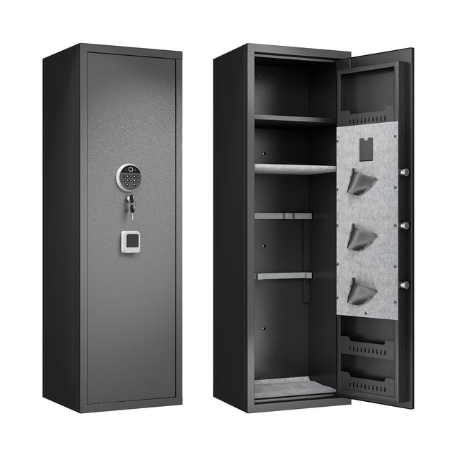 - [Versatile And Fast Unlocking Methods] rifle safes can be opened by three types of unlocking methods. 1. fingerprint unlocking. 2. password unlocking. 3. key unlocking. Prevent unauthorised access.