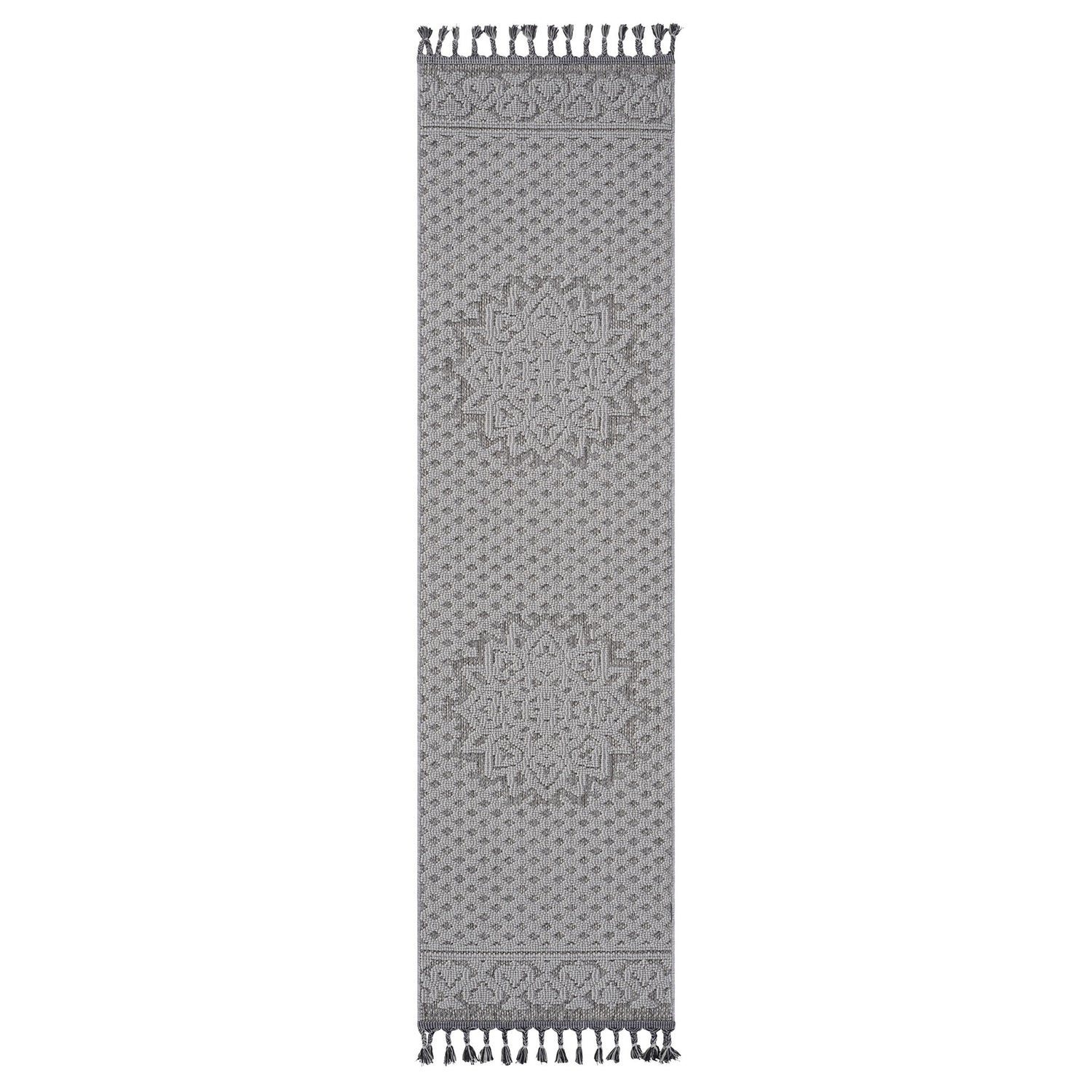Guros - 2' X 8' Medallion Indoor / Outdoor Runner Rug - Gray / White