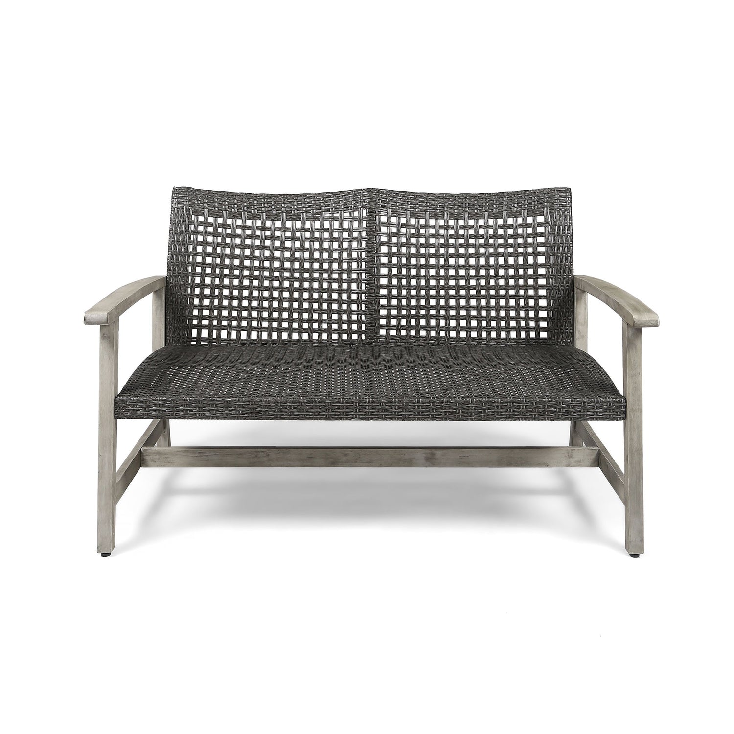 Hampton - Outdoor Wood And Wicker Loveseat - Gray