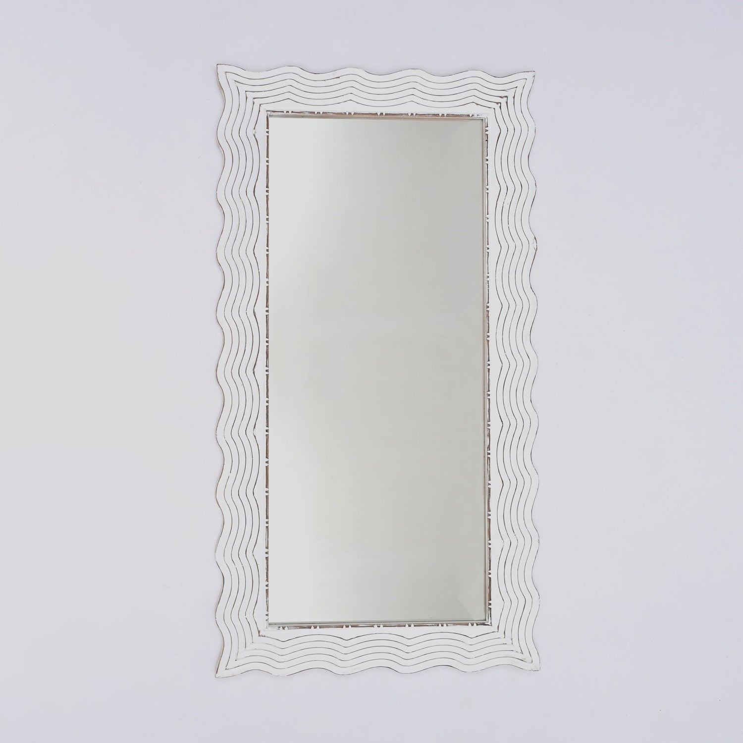 Handcarved Wave Design Rectangle Mirror Accent Enhancing Space - Antique White is backordered and will ship as soon as it is back in stock.
