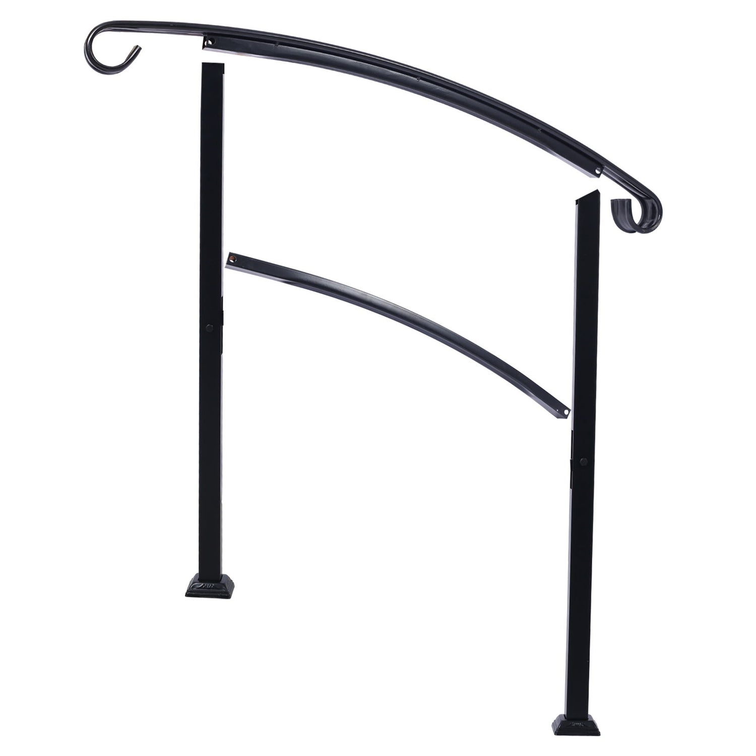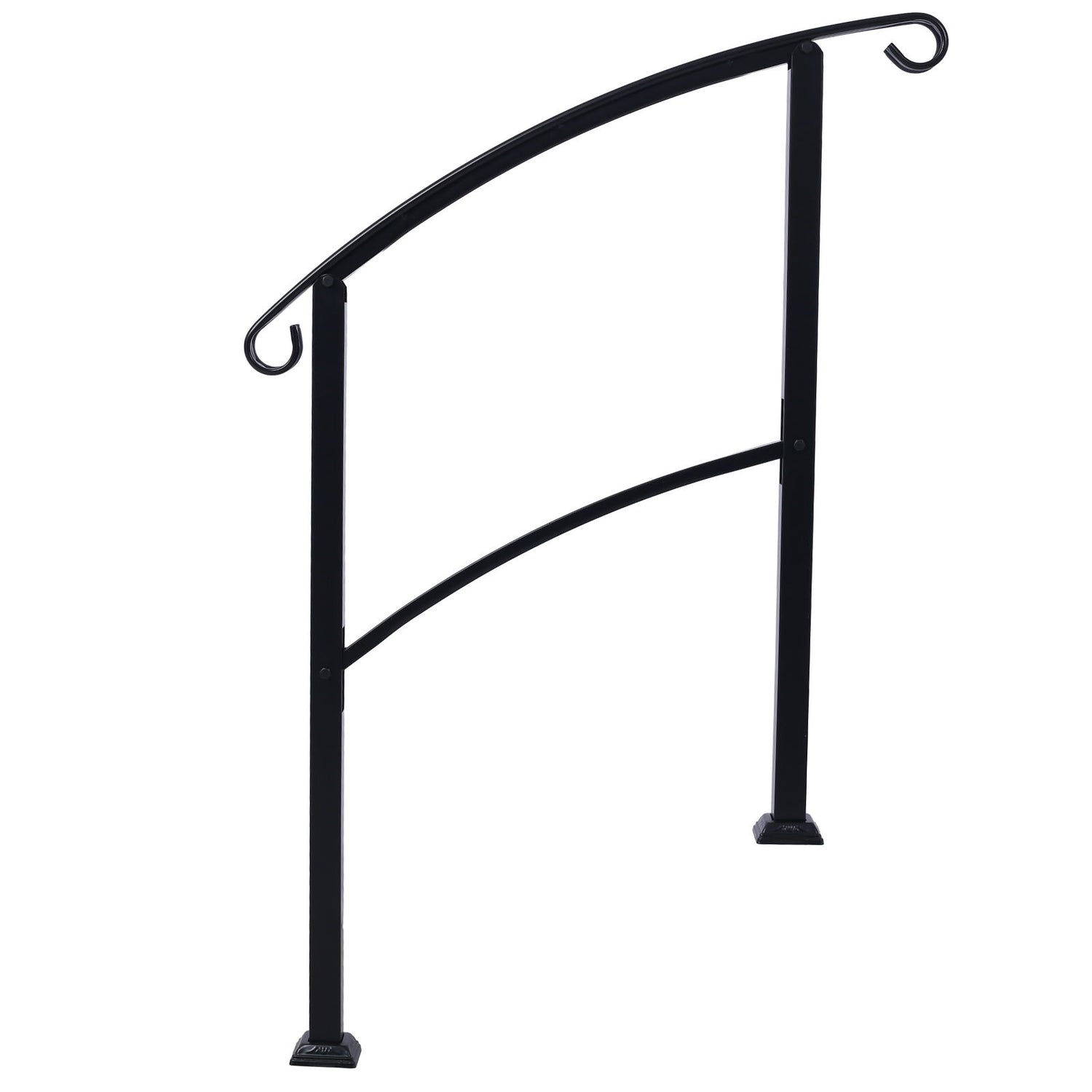 Handrails For Outdoor Steps, Fit 1 Or 3 Steps Outdoor Stair Railing, Flexible Front Porch Hand Rail, Transitional Handrails For Concrete Steps Or Wooden Stairs - Black