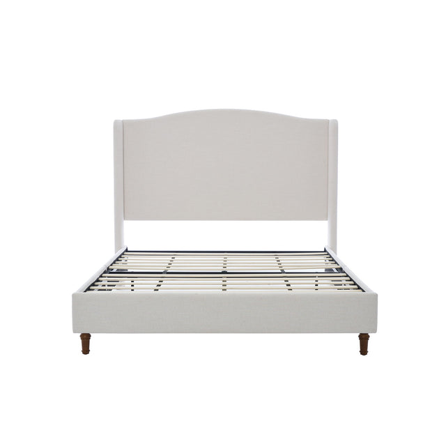 Hannah - Queen Upholstered Wingback Bed Size, Tall Headboard Upholstered Queen Bed, Premium Textured Canvas Chenille Look, Minimalist Designs, No Box Spring Needed - Ivory