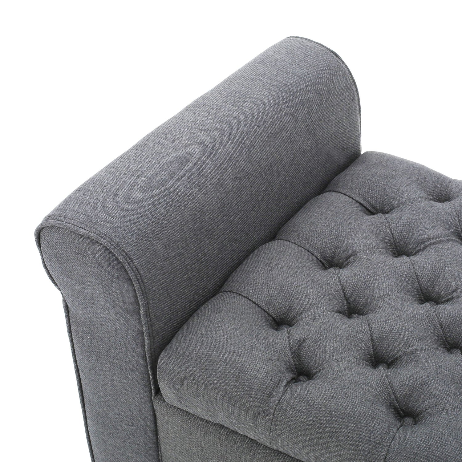 Hayes - Contemporary Armed Storage Bench With Rolled Arms And Button Tufting - Dark Gray