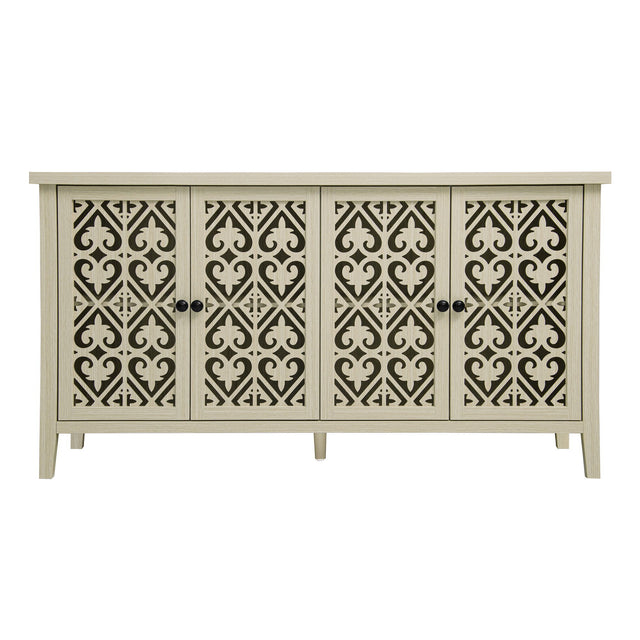 Hollowed Out Cabinet With 4 Doors, American Furniture, Suitable For Bedroom, Living Room, Study - Natural