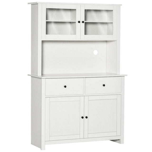 Homcom - 63.5" Kitchen Buffet With Hutch, Pantry Storage Cabinet With 4 Shelves, Drawers, Framed Glass Doors, Open Microwave Countertop - Antique White