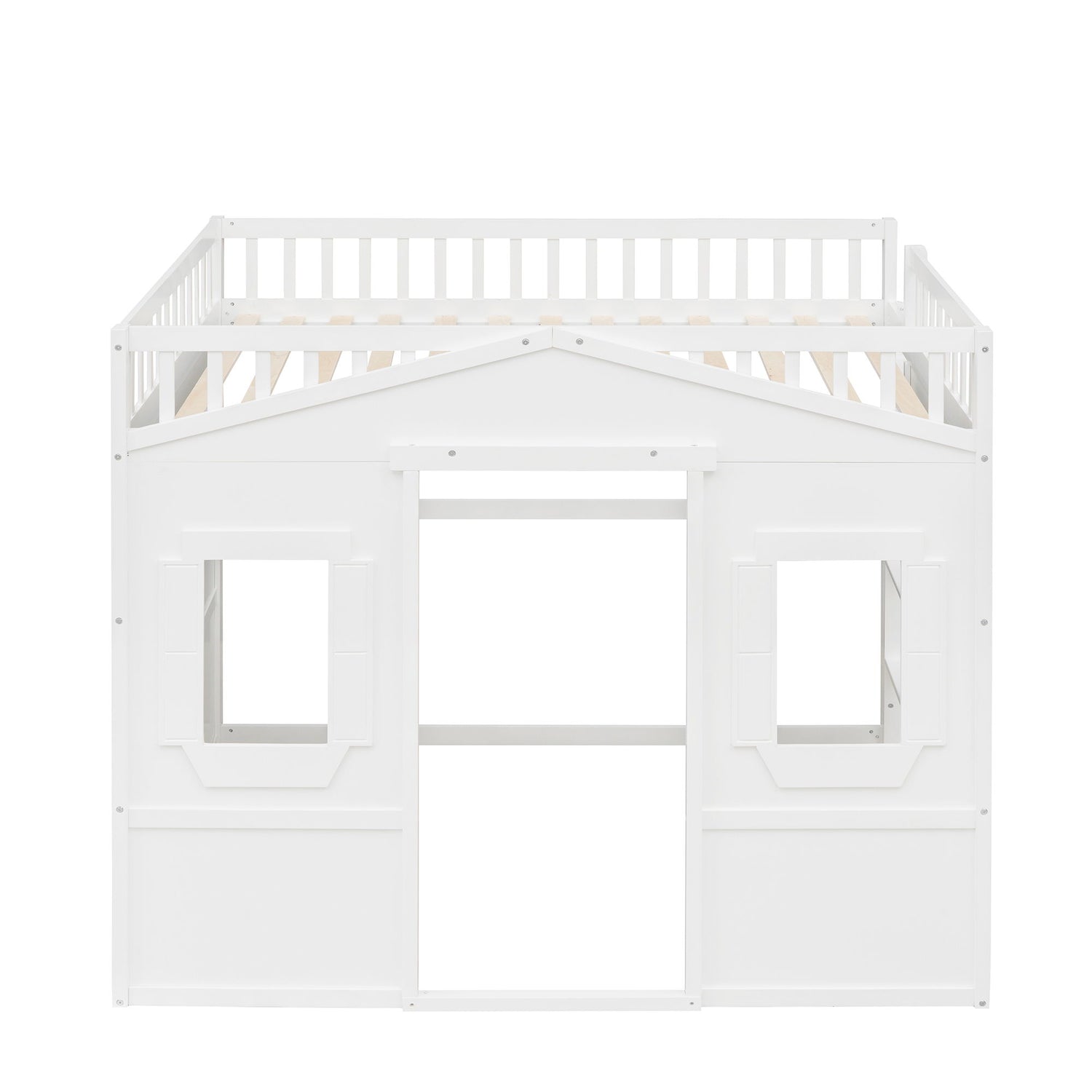 Full Size House Loft Bed With Ladder - White