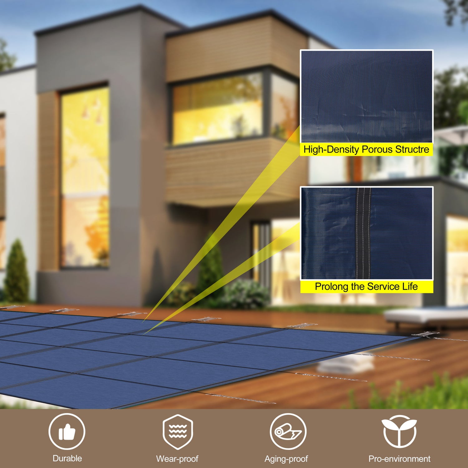 Inground Pool Safety Cover, 18 X 36Ft Rectangle Winter Safety Pool Cover, Solid Safety, Polypropylene - Blue