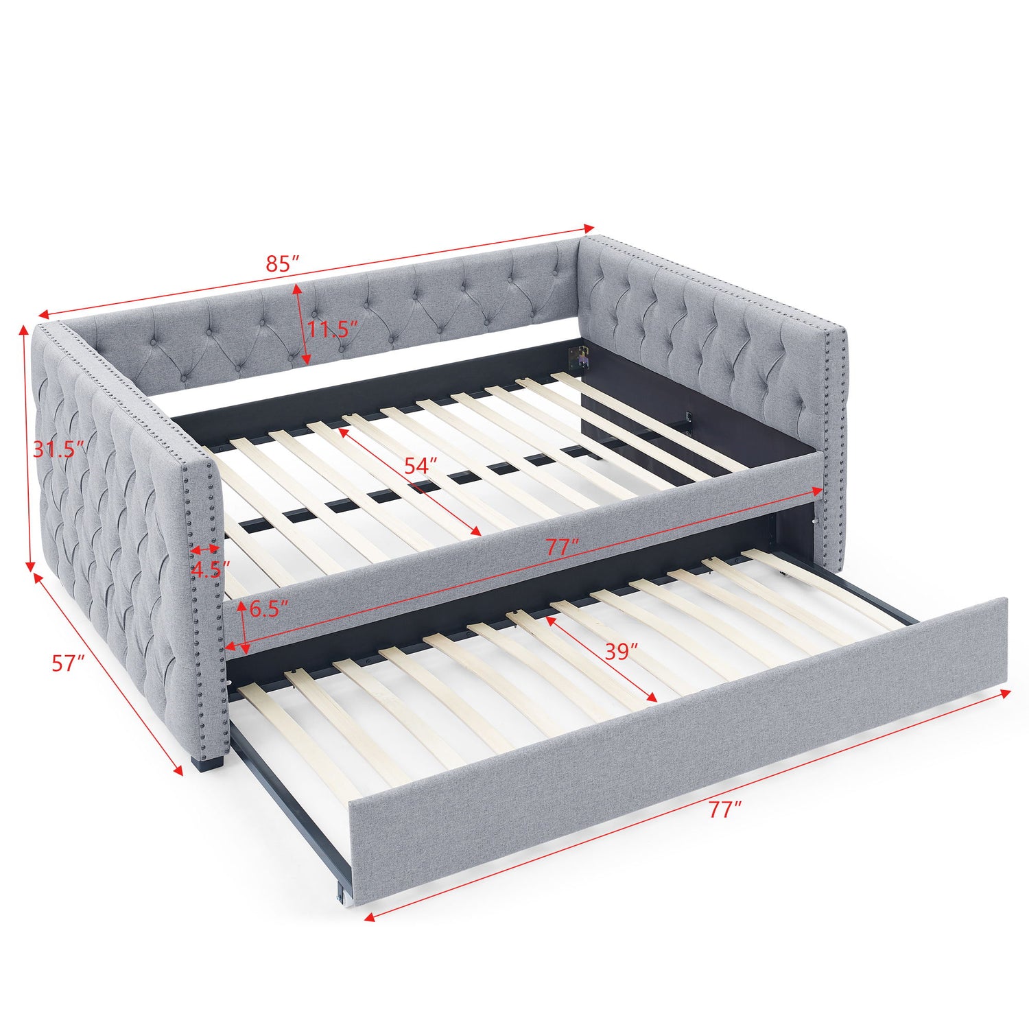 Inspired Upholstered Daybed With Trundle, Button Tufted