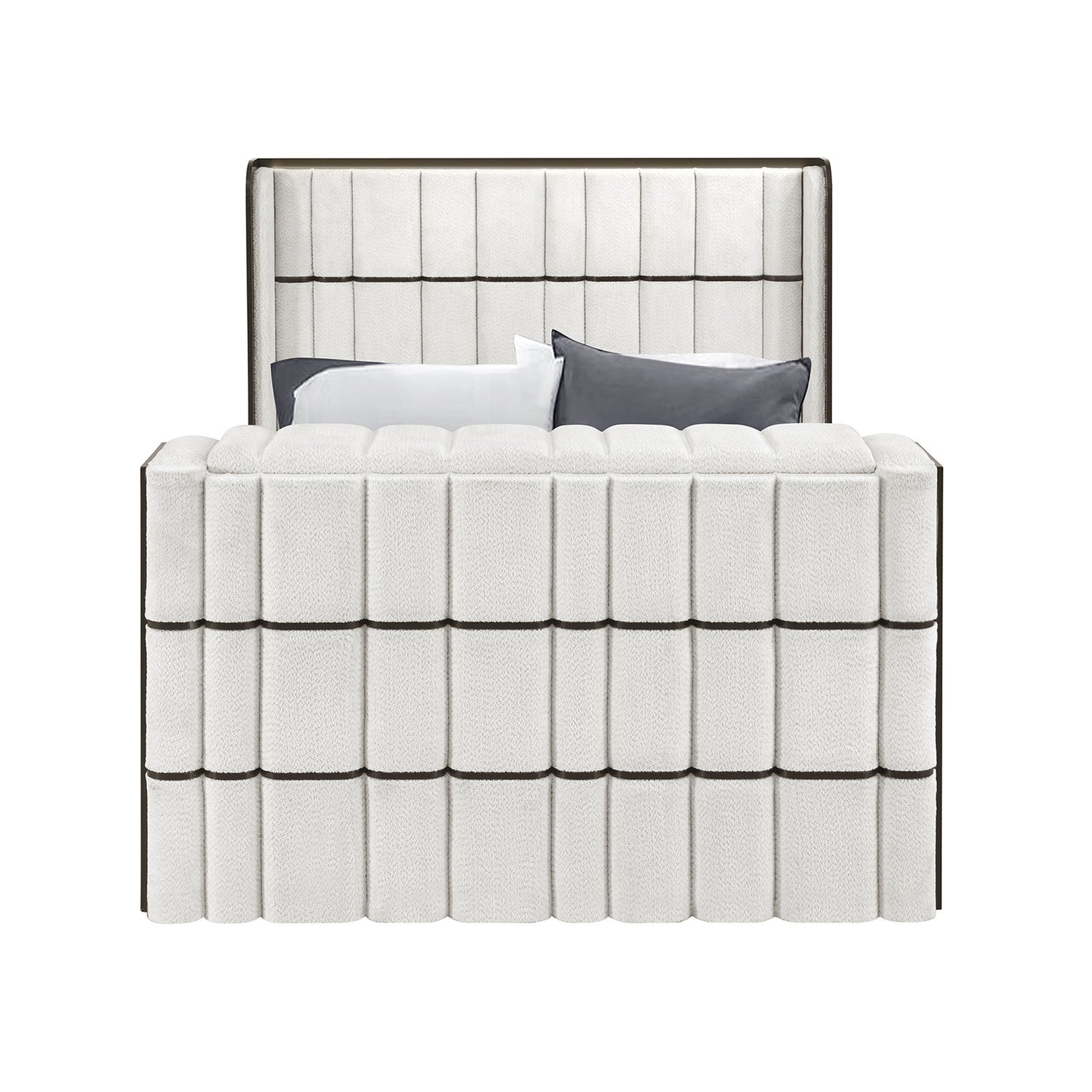Isaiah - King Bed With 50" TV Lift LED, Speakers And Fireplace - White / Black