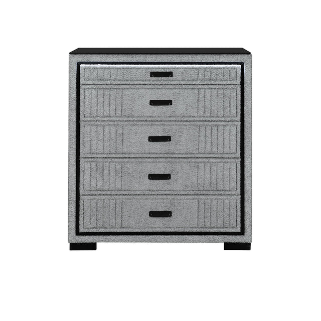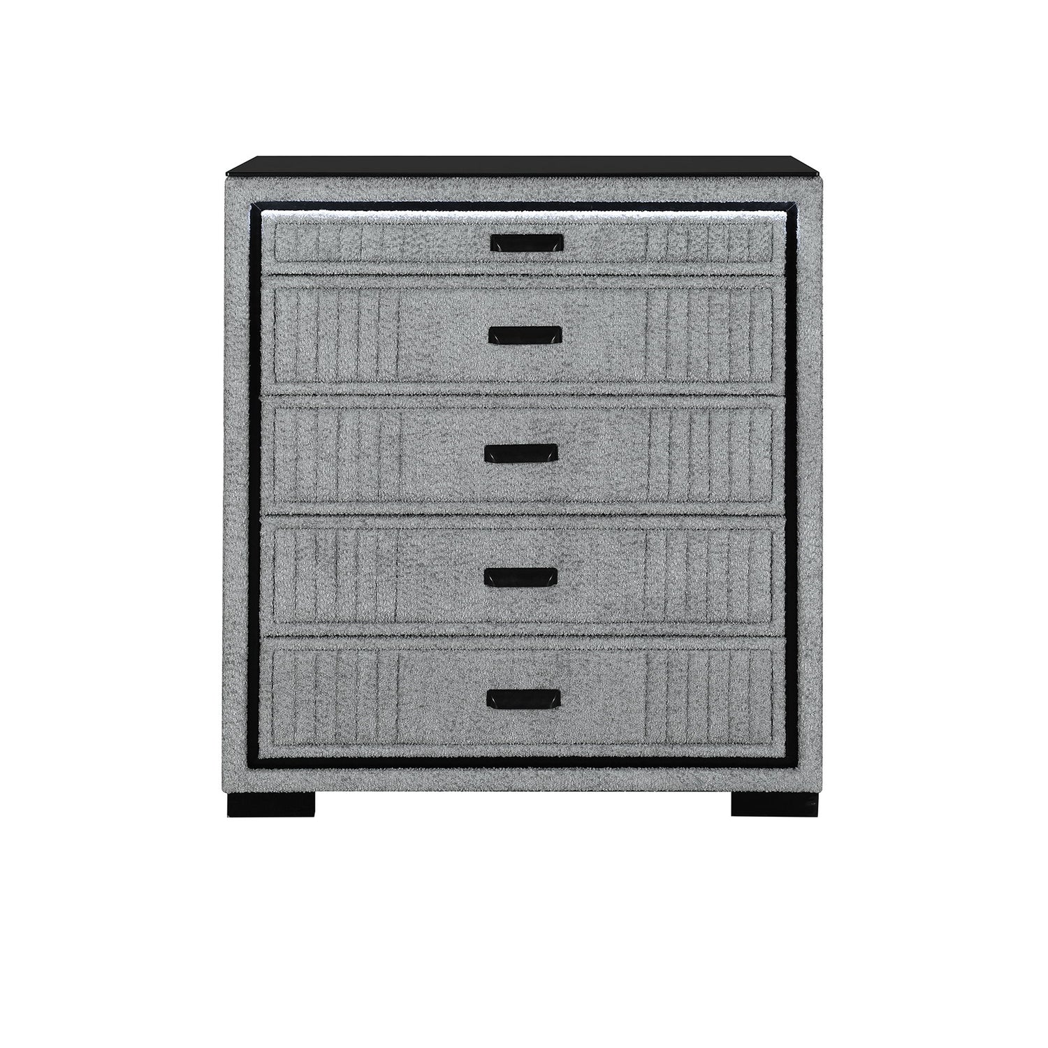 Isaiah - Upholstered Chest With LED Lighting, Frame, Block Feet - Gray