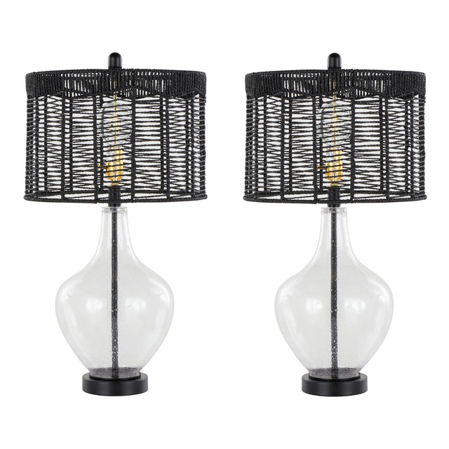Jenna - Contemporary Table Lamp (Set of 2) - Clear Seeded / Matte Black / Matte Black