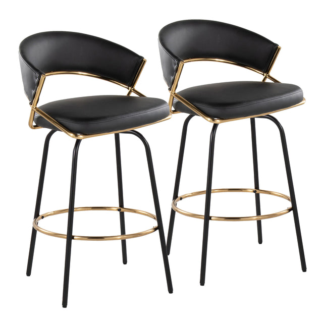 Jie - Fixed Height Contemporary Counter Stool With Swivel With Round Footrest (Set of 2) - Gold / Black / Gold