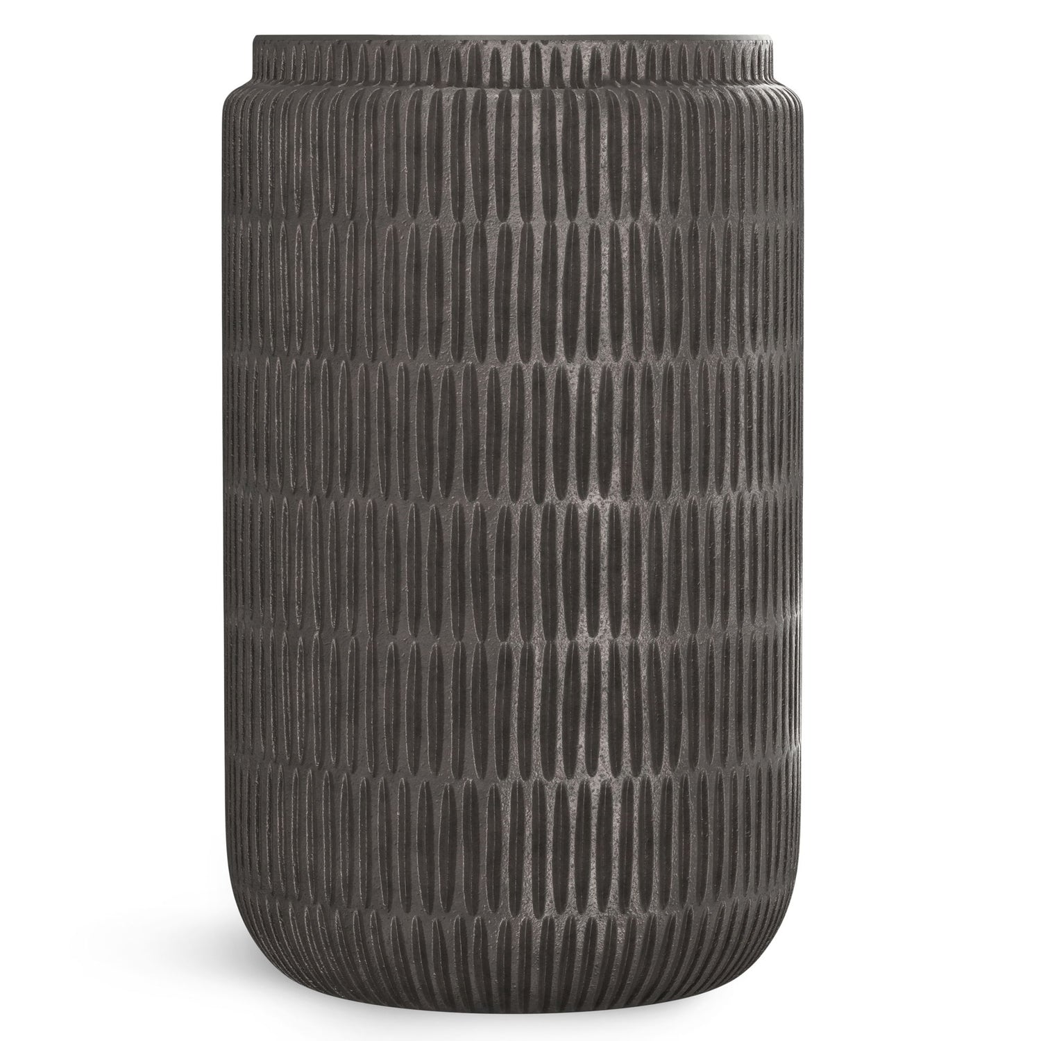 - Hand-finished in Graphite with a subtle texture on the tabletop and a lined textured pattern on the base that make each piece unique.