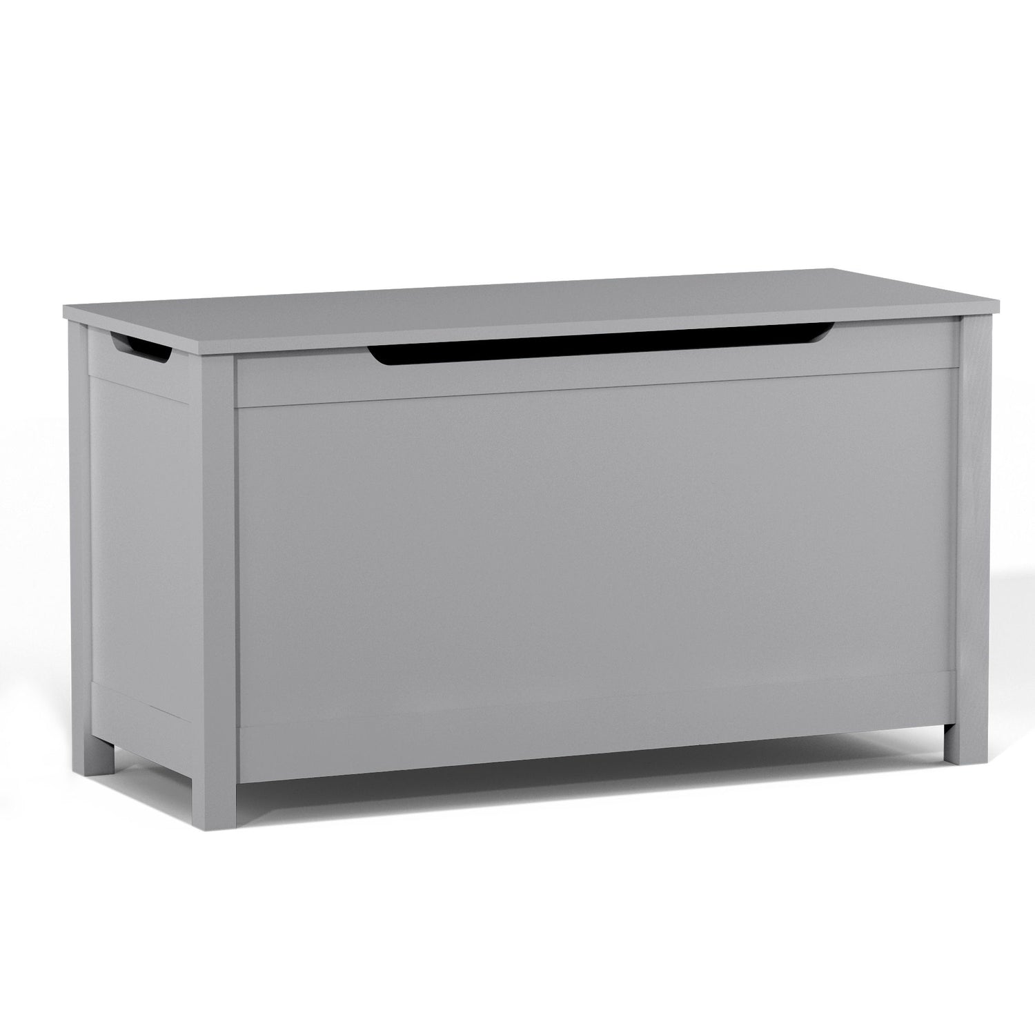 Kids Wooden Toy Box Storage With Safety Hinged Lid For Ages 2+ - Gray