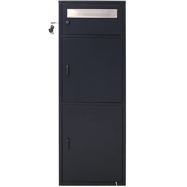 Large Steel Freestanding Floor Parcel Package Drop With Locking Letterbox Drop Mail Box With Multi Compartments - Black