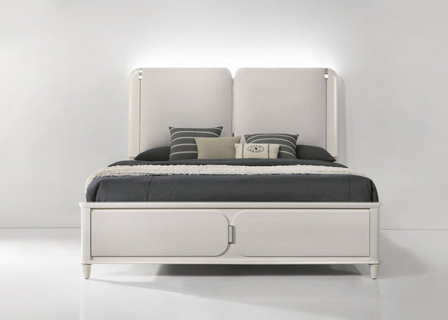 Laveda - Boucle Eastern King Bed With LED - Light Gray / White