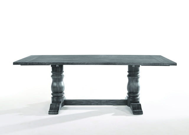 - Striking Trestle Base: The trestle base includes double turned empire pedestals, providing stability and a visually striking element that complements the weathered finish, adding to the table's overall aesthetic.
