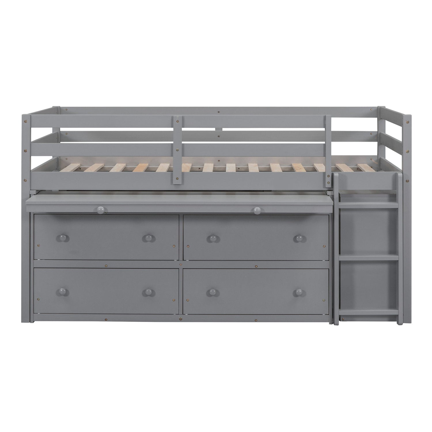 Twin Size Loft Bed With Retractable Writing Desk And 4 Drawers, With Lateral Portable Desk And Shelves - Gray