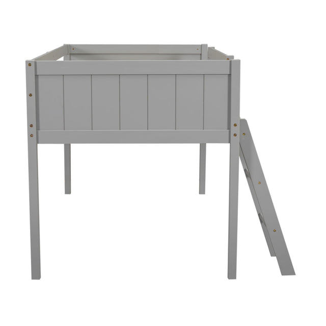Twin Size Low Loft Bed With Adjustable Ladder - Gray