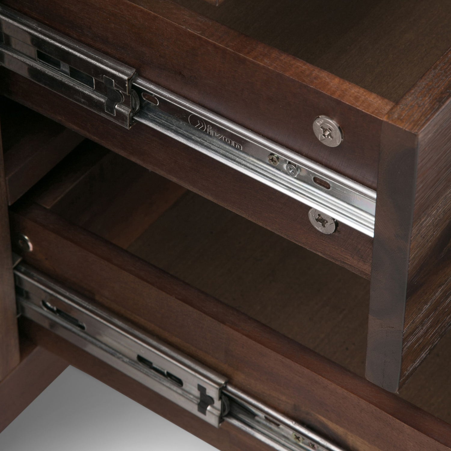 - Modern Industrial design includes solid metal angled legs for reliable support and discreet hand pulls