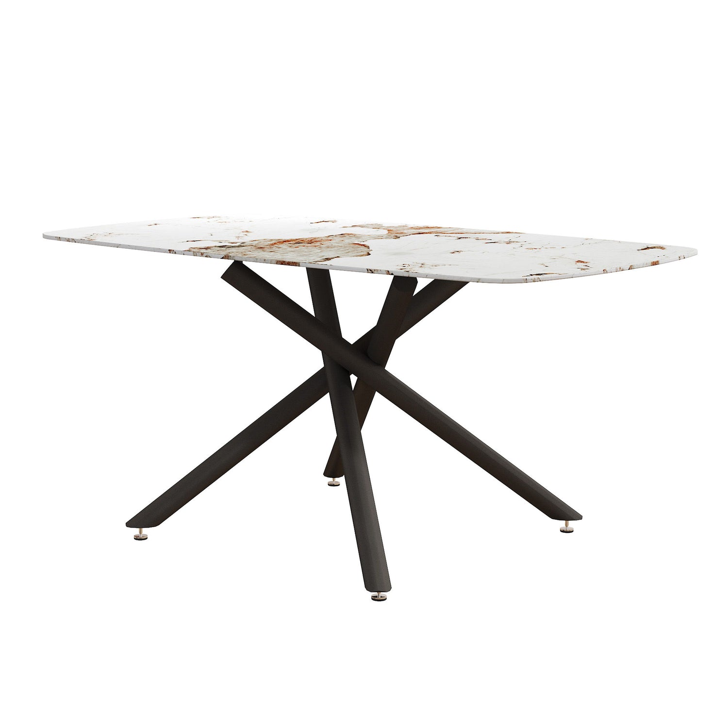 Luxurious Marble Patterned Dining Table With Metal Fork Legs